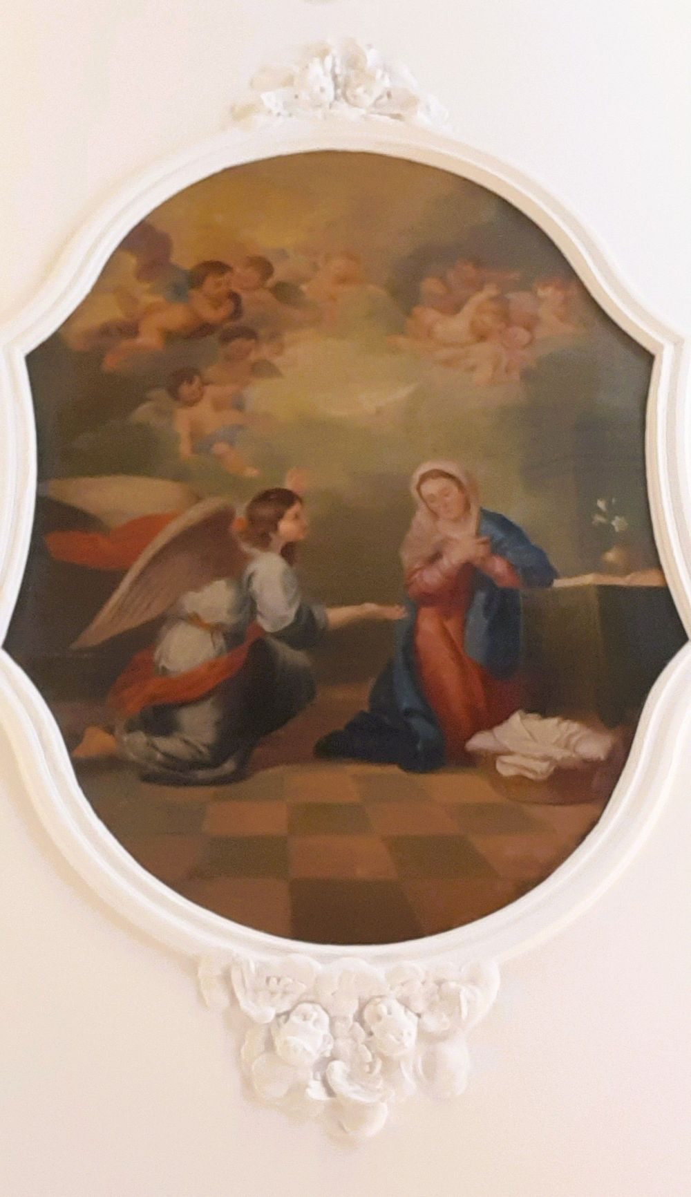 Das 1,60 × 2,80 m große Deckengemälde zeigt eine „Verkündigungszene“ aus der 2. Hälfte des 17. Jahrhunderts.
