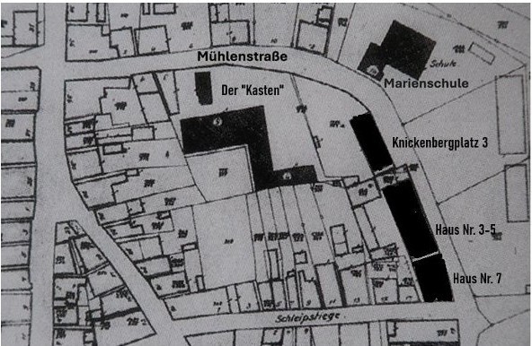 Das einstige Schul- und Pensionatshaus für auswärtige Schüler des Knickenbergschen Instituts lag in der Mühlenstraße 3–5. (Foto: Westfälische Nachrichten)