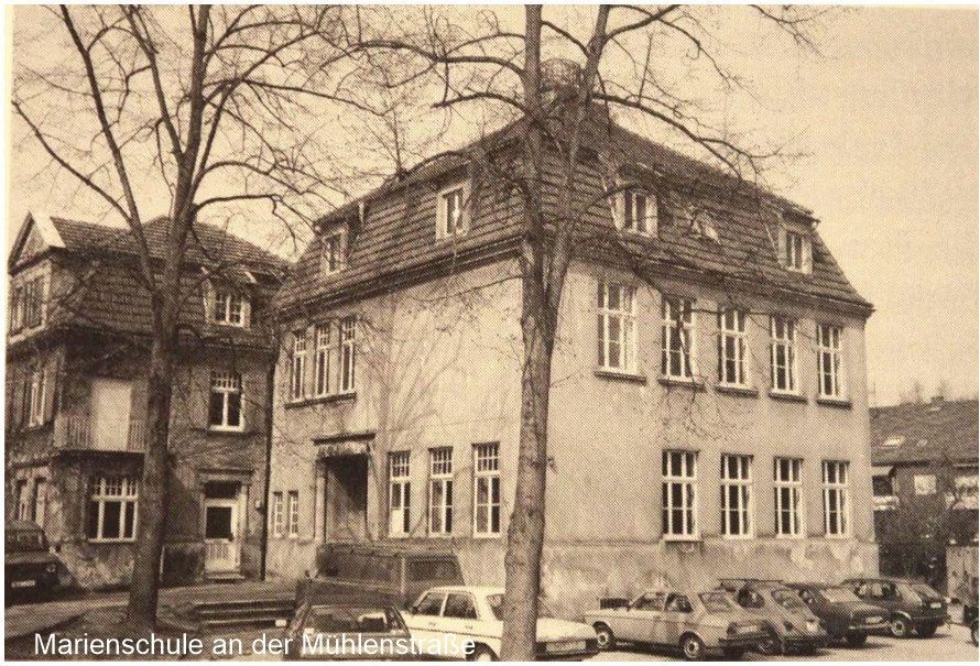Schließlich konnte im Jahre 1911 ein neues großes Schulgebäude für alle Mädchenklassen seiner Bestimmung übergeben werden. Es lag ebenfalls an der Mühlenstraße und ist sicher vielen noch als „die Mädchenschule“ oder „die Marienschule“ bekannt. Das Schulgebäude lag in dem Winkel Mühlenstraße/Schlaunstraße, dort sind heute die Praxen von Dr. Siebecker und Dr. Hoffmann. Die Schule wurde 1985 abgerissen und bis zur Errichtung eines eigenen Schulgebäudes zum Schulzentrum verlegt.