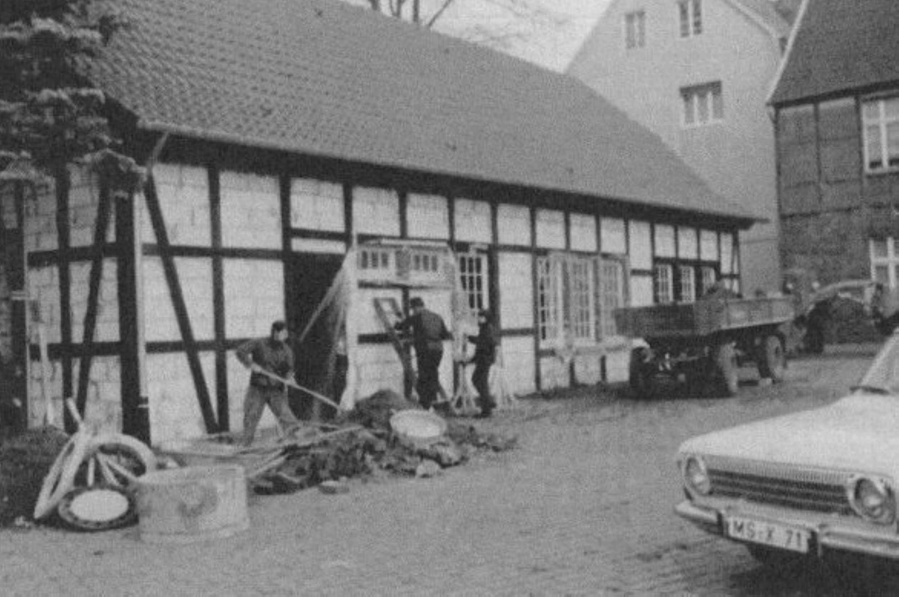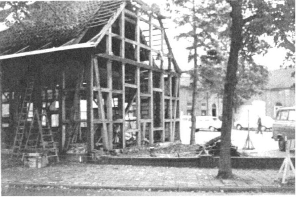 Am 1.September 1974 wurde mit der Renovierung begonnen. Dazu wurde, wie das Foto zeigt, bis auf das Fachwerk der gesamte Baukörper entkernt. (Foto: Stadtarchiv)
