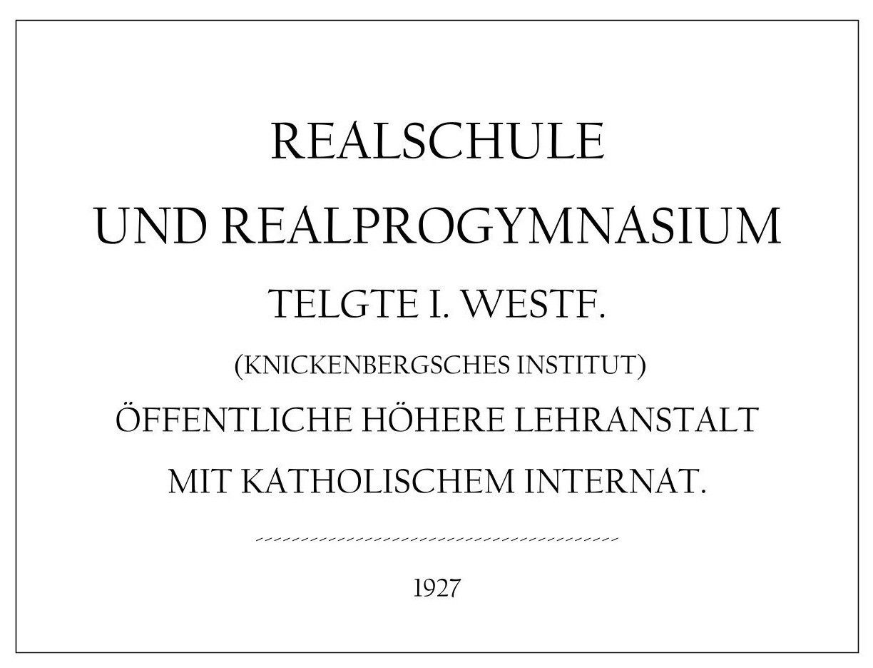 Das Knickenbergsche Institut musste etwas Besonderes gewesen sein. Noch 1927 wurde ein Werbeprospekt unter dieser Überschrift versandt, obwohl die Lehranstalt schon 1923 durch den Kommunalzweckverband (Stadt Telgte) übernommen wurde. (Foto: Stadtarchiv)