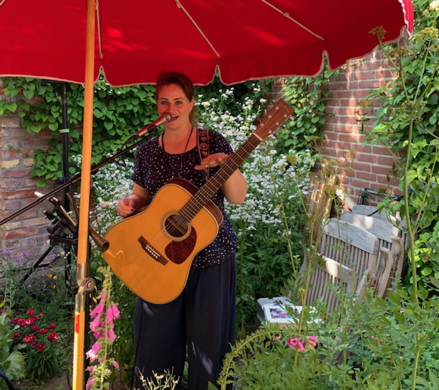 Bei der traditionellen Kaffeetafel des Heimatvereins am Freitag sorgte der Überraschungsgast Martje Thalmann, musikalisch als Marta Latour bekannt, für beste Unterhaltung. Mit Gitarre und kleinen humorvollen Geschichten aus dem Münsterland fand bei schönstem Wetter im Garten des Blaufärberhauses und der Upkammer die dritte Westfälische Kaffeetafel statt, zu der sich rd. fünfzig Gäste einfanden.