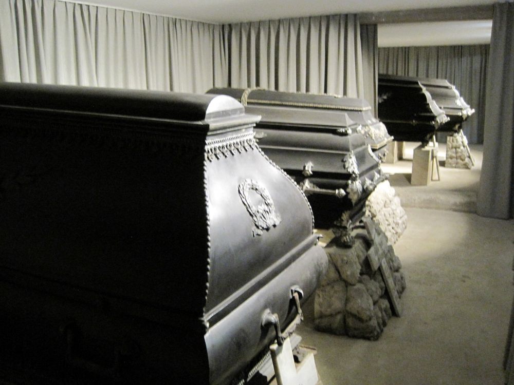 In der Kapellengruft auf Gut Heidhorn stehen die fünf reichverzierten Zinksärge der Verstorbenen: