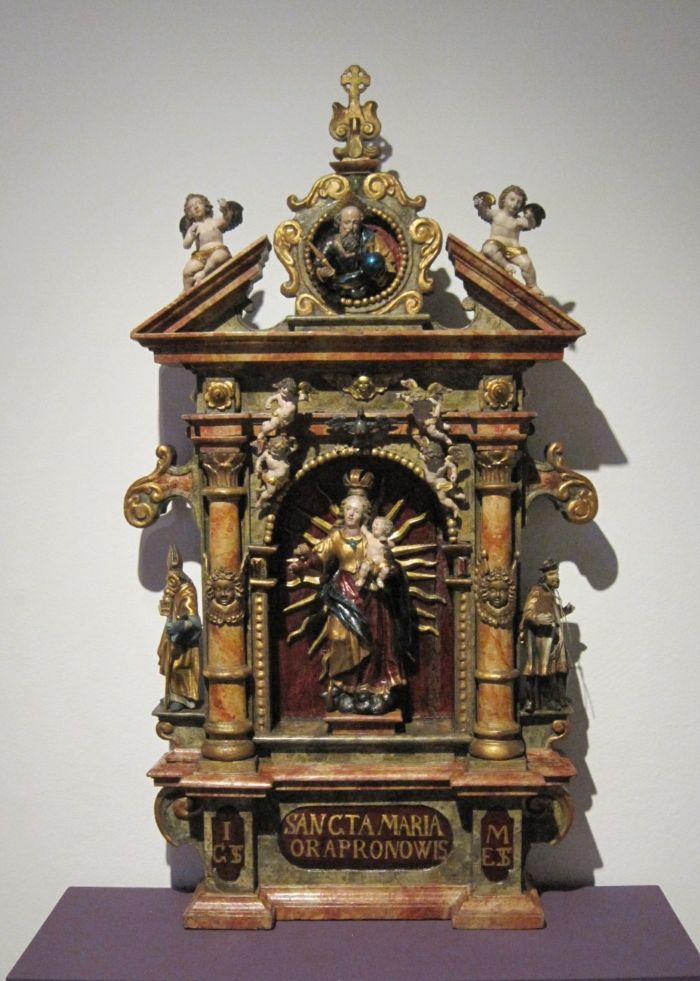 Der Hausaltar gehörte zur Ausstattung des Emilienhauses an der Josephstraße 2 in Telgte, für die Schwestern von der Göttlichen Vorsehung. Hier befand er sich im Besucherzimmer, eingesetzt in einer verglasten Wandnische. Diese gaben das Haus 1969 auf. Es ist bekannt, dass der Stifter des Hauses, Joseph Hötte jr. Münster, solche Gegenstände im Kunsthandel erwarb um seine Stiftungen damit auszustatten. Mit der Übernahme des Hauses 1971 gelangte es in den Kirchenbesitz. Bis 1980 stand der Hausaltar im Arbeitszimmer von Propst Wilhelm Fleuth.